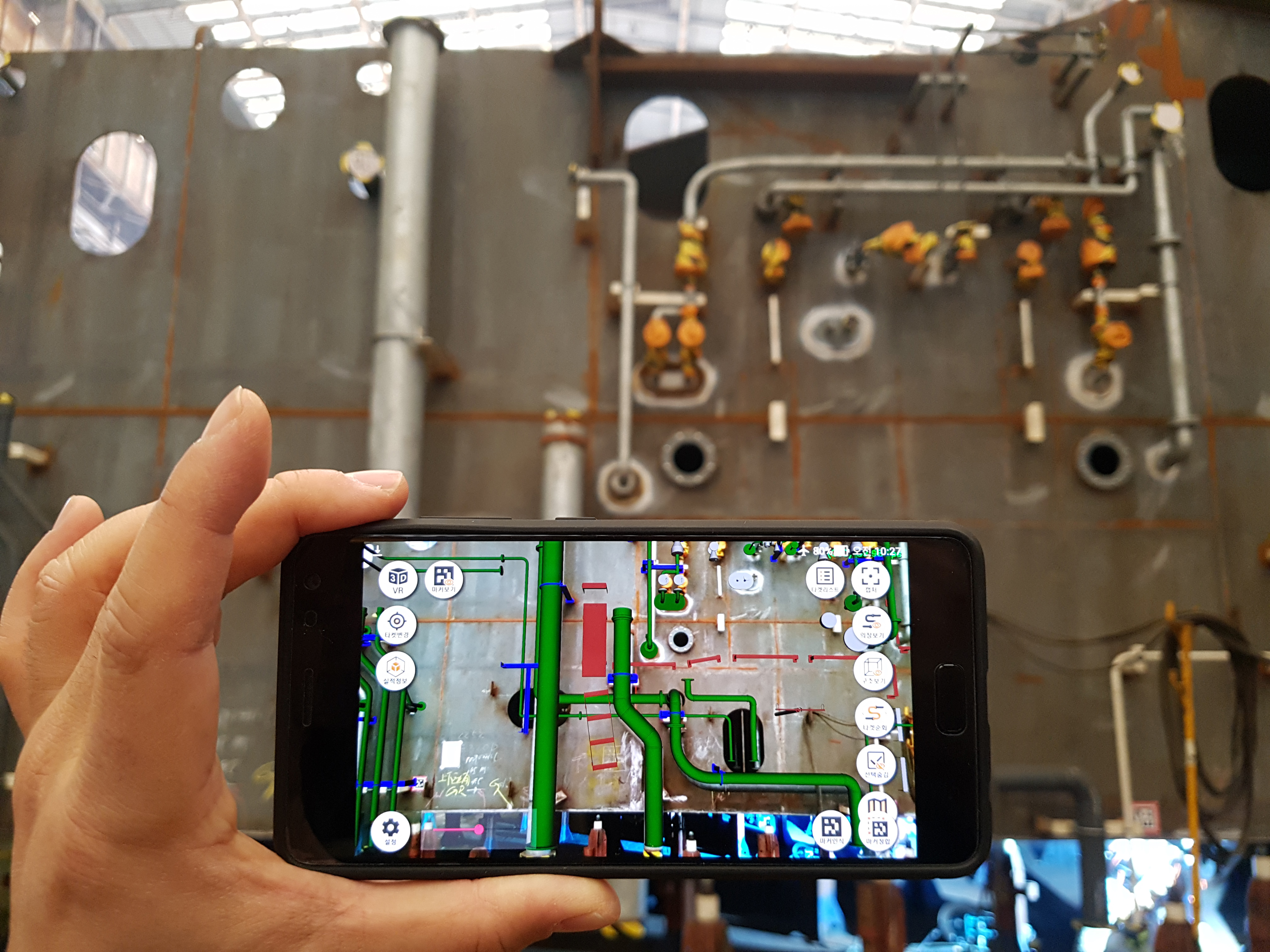 개인 스마트폰을 통해 3D 모델 및 설계 도면 확인은 물론 증강현실(AR) 기술을 결합해 작업 대상 영역에 3D 모델을 겹쳐 가시화함으로써 직관적인 작업 수행 및 검사가 가능합니다.