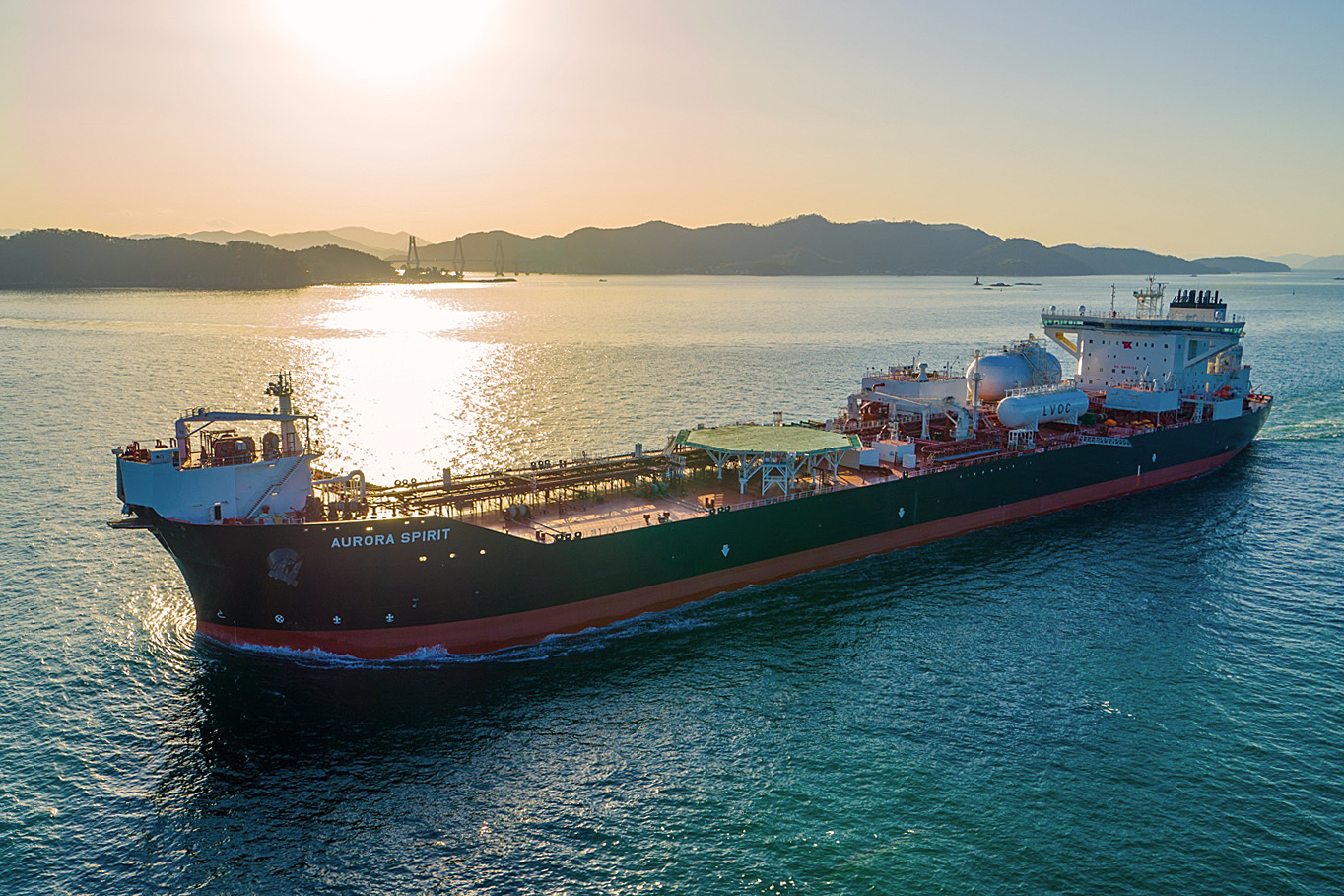 '오로라 스피리트(Aurora Spirit)'호로 명명된 해당 선박은 세계 최초의 LNG 이중연료 추진 셔틀탱커로서 기존 선박 대비 황산화물 85%, 질소산화물 98%, 미세먼지 98%를 줄일 수 있을 뿐만 아니라 국제해사기구의 이산화탄소(CO2) 배출 규제에도 효율적으로 대응이 가능합니다.